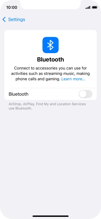 Press the indicator next to "Bluetooth" to turn the function on or off.