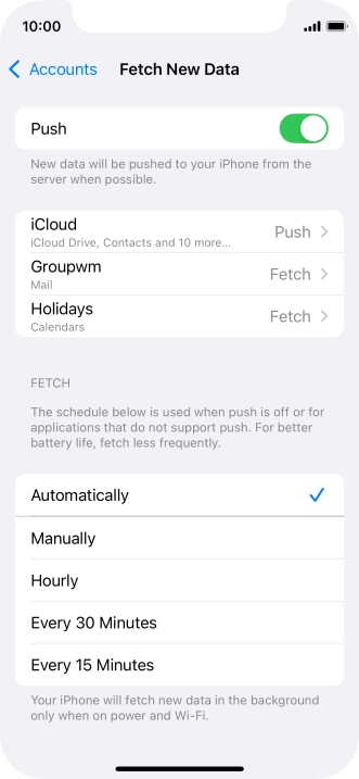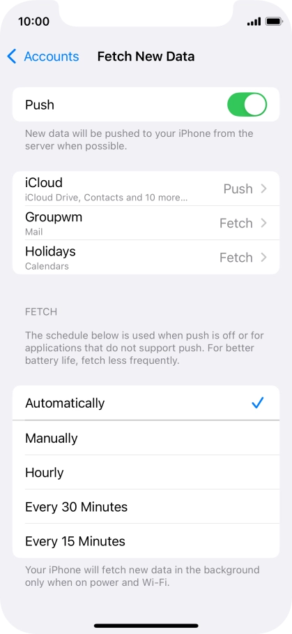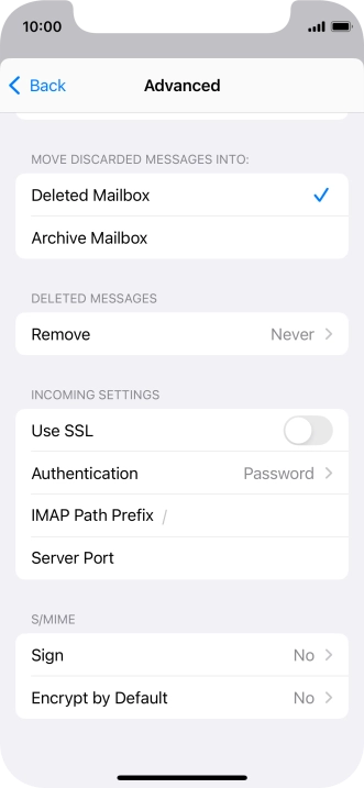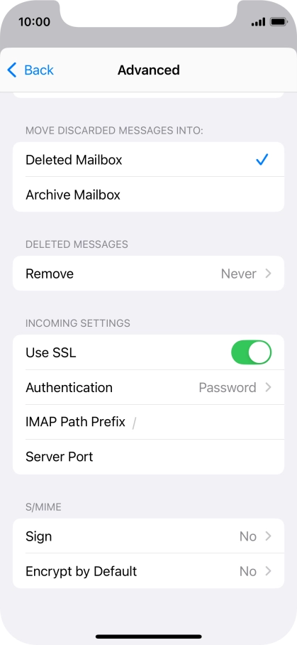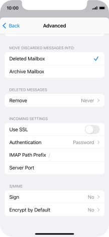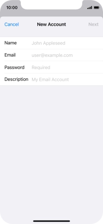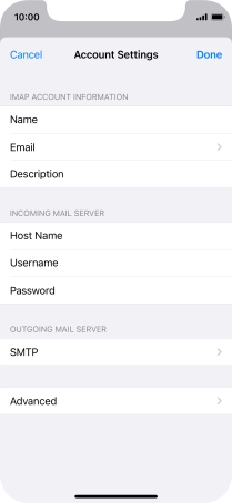 Press the required email account and follow the instructions on the screen to select settings for the specific account.