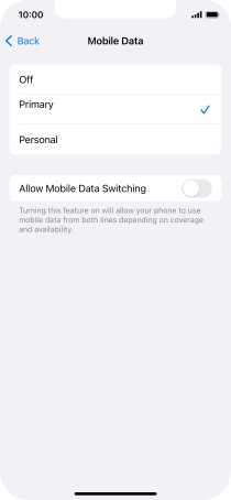 Press the indicator next to "Allow Mobile Data Switching" to turn the function on or off.