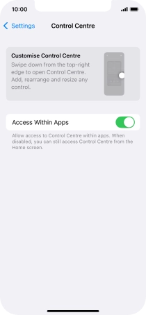 2. Turn use of Control Centre in applications on or off