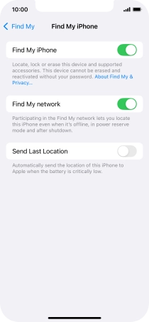Select settings for Find My iPhone on your Apple iPhone 12 Pro iOS 18