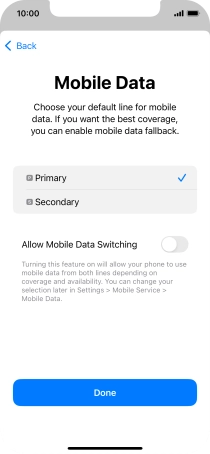 Press the indicator next to "Allow Mobile Data Switching" to turn the function on or off.