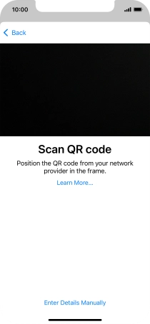 Place the QR code you've received inside the phone camera frame to scan the code. If you’ve deleted your eSIM, you can re-add it using your existing QR code. If you’re having problems, see our FAQ.