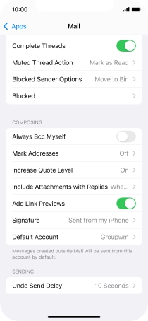 Select default email account on your Apple iPhone 12 Pro iOS 18