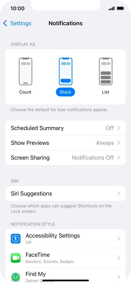 You can turn display of notifications when using SharePlay or Screen Mirroring on or off.
