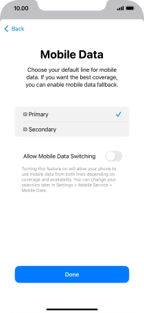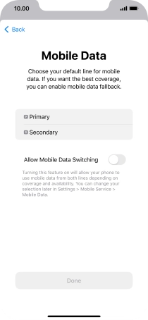 Press the indicator next to "Allow Mobile Data Switching" to turn the function on or off.