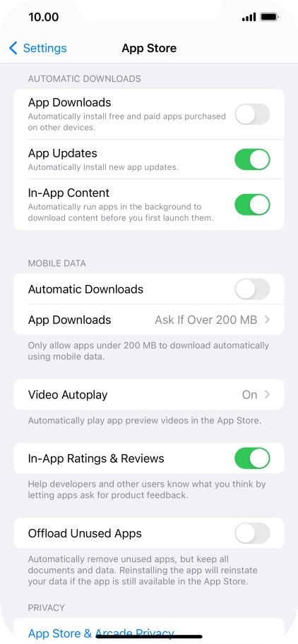 Press the indicator next to "App Downloads" to turn the function on or off.