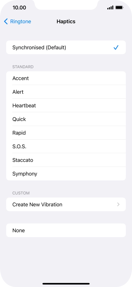 Press Create New Vibration and follow the instructions on the screen to create your own vibration pattern.