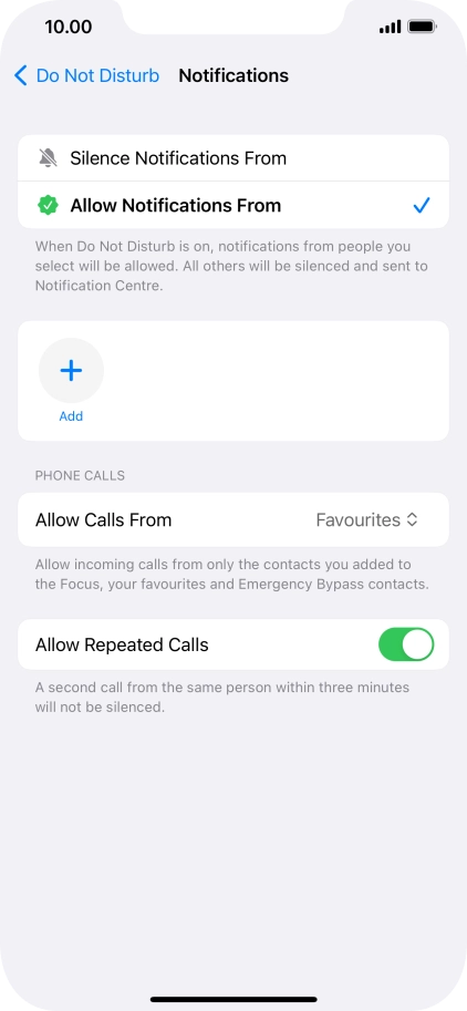 Press Add Schedule and follow the instructions on the screen to select settings for automatic activation of Do Not Disturb.