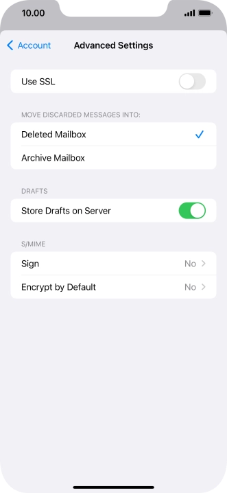 Press the indicator next to "Use SSL" to turn the function on or off.