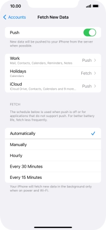 Press the required email account and follow the instructions on the screen to select settings for the specific account.