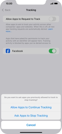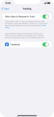 Press the indicator next to "Allow Apps to Request to Track" to turn the function on or off.