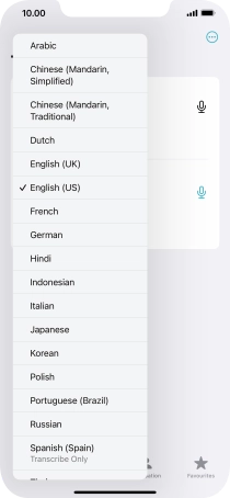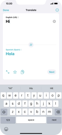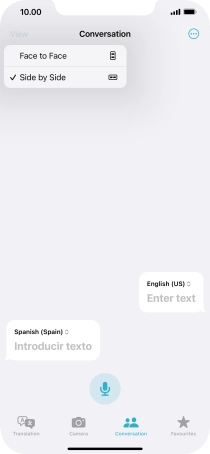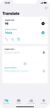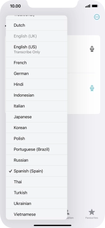 To translate speech, press the microphone icon and say the required word or sentence.
