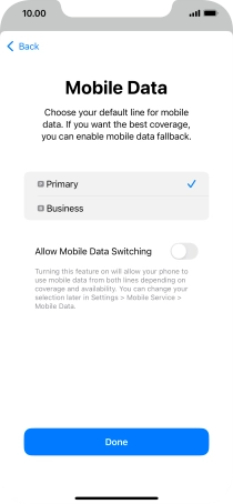 Press the indicator next to "Allow Mobile Data Switching" to turn the function on or off.