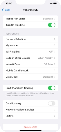Press the required eSIM below "SIMs".