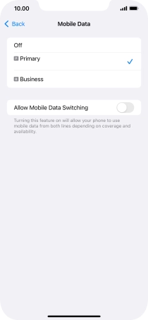 3. Turn automatic selection of price plan for mobile data on or off