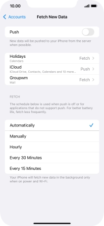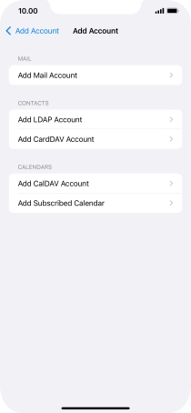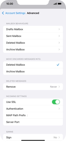 Press the required email account and follow the instructions on the screen to select settings for the specific account.