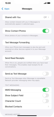 Press the indicator next to "MMS Messaging" to turn on the function.