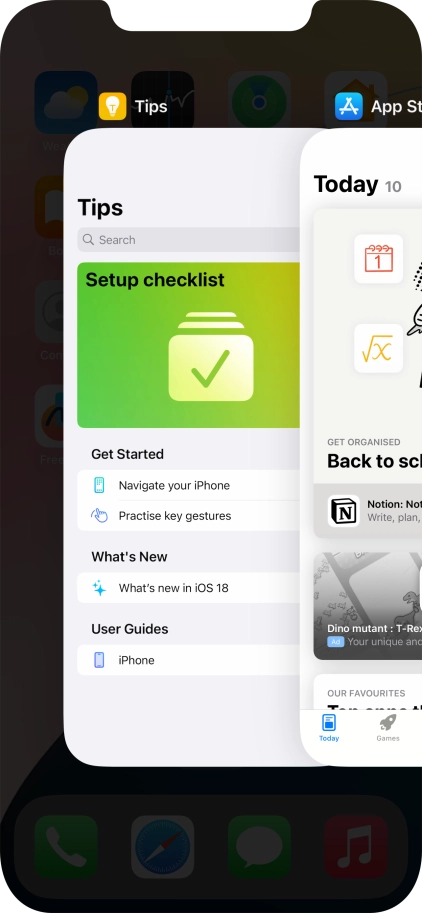 Slide your finger slowly upwards starting from the bottom of the screen until the list of running applications is displayed.
