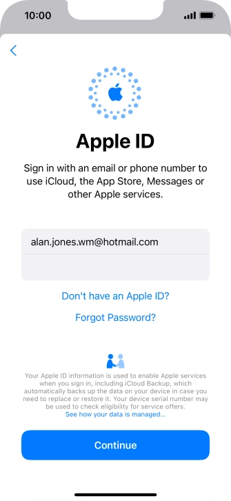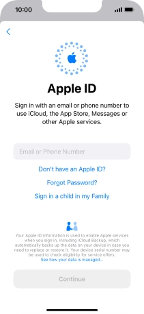 If you don t have an Apple ID, press Don't have an Apple ID? and follow the instructions on the screen to create an Apple ID.