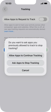 Press the indicator next to "Allow Apps to Request to Track" to turn the function on or off.