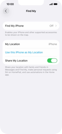 Select settings for Find My iPhone on your Apple iPhone 13 iOS 26