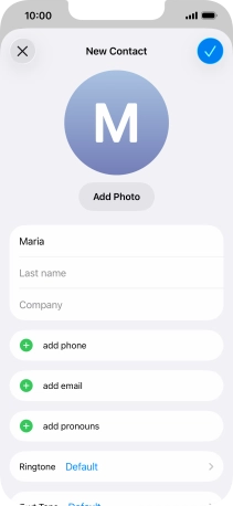 Follow the instructions on the screen to add more information such as an email address and a personal ring tone.