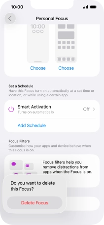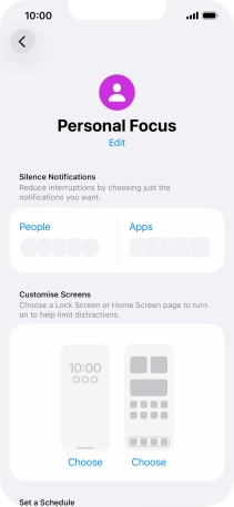 Press the required setting below "Set a Schedule" and follow the instructions on the screen to set up automatic activation of the selected focus mode.
