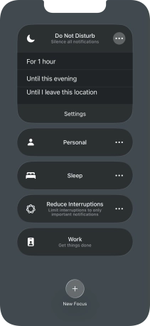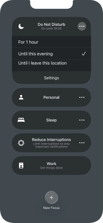You can set your phone to activate the selected focus mode for a specified period of time, at a specific location or while using a specific app.