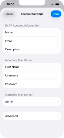 Press the required email account and follow the instructions on the screen to select settings for the specific account.