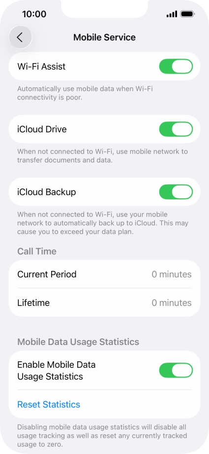 Press the indicator next to "Wi-Fi Assist" to turn the function on or off.