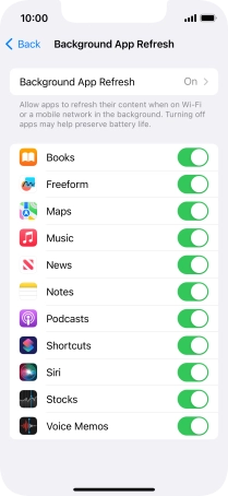 To turn off background refresh of apps, press Off.