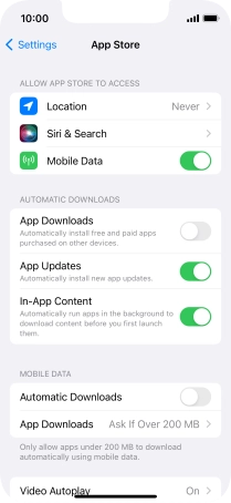 Press the indicator next to "Automatic Downloads" to turn the function on or off.