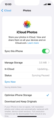 Press the indicators next to the required data types to turn synchronisation of each data type on or off.