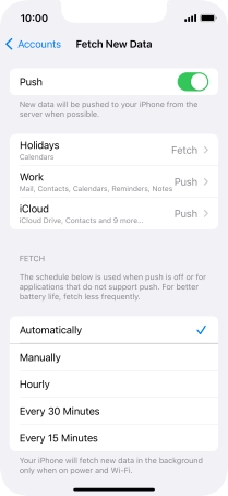 8. Select setting for retrieval of new email messages