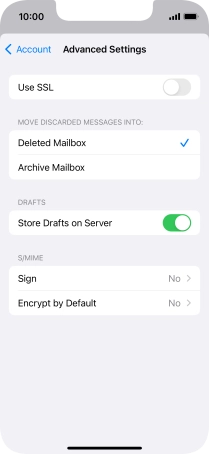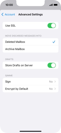 Press the required email account and follow the instructions on the screen to select settings for the specific account.