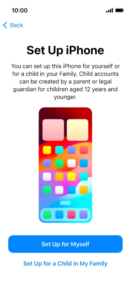 If your phone will be used by a child below the age of 13, follow the instructions on the screen to set up an Apple ID for the child.