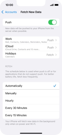 Press the required email account and follow the instructions on the screen to select settings for the specific account.