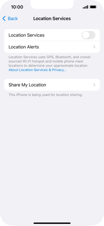 Press the indicator next to "Location Services" to turn the function on or off.