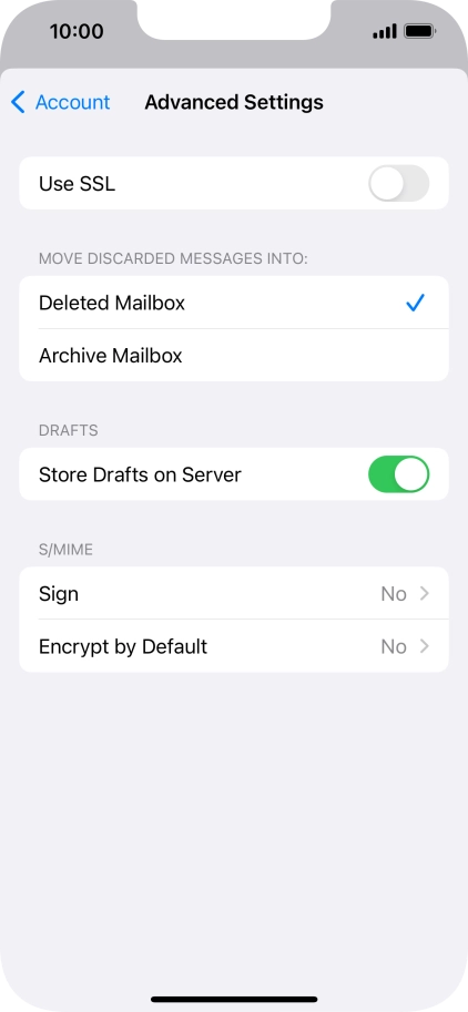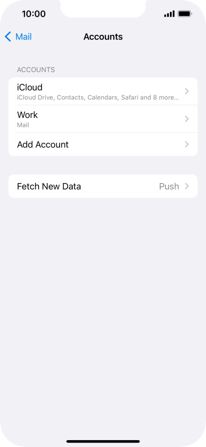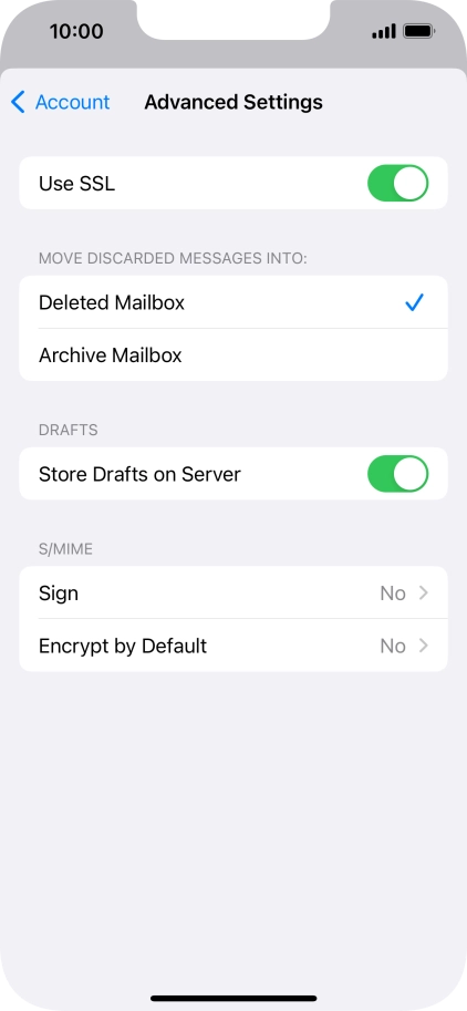 Press the required email account and follow the instructions on the screen to select settings for the specific account.