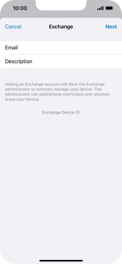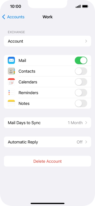 Press the name of the Exchange email account you've just set up.
