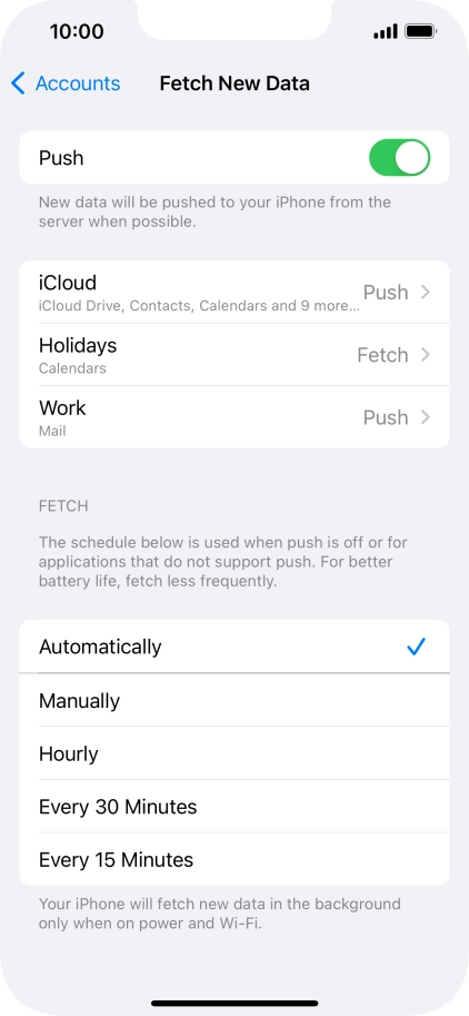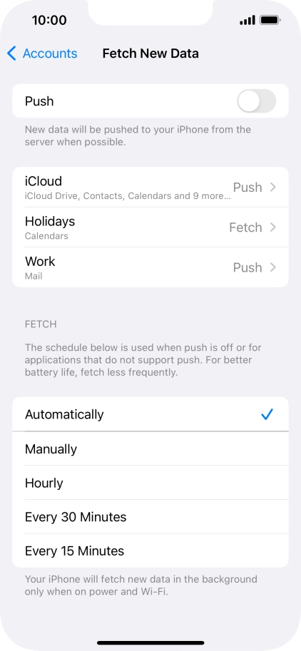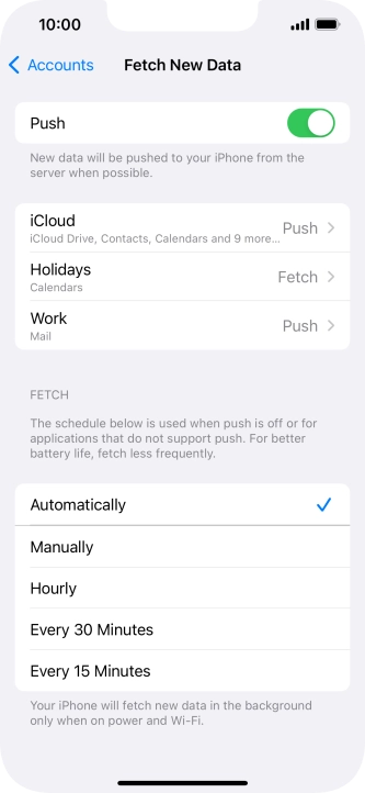8 Select setting for retrieval of new email messages