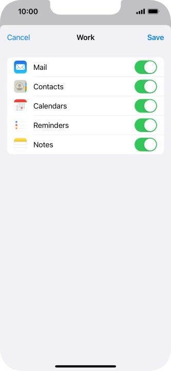 Press the indicators next to the required data types to turn synchronisation of each data type on or off.