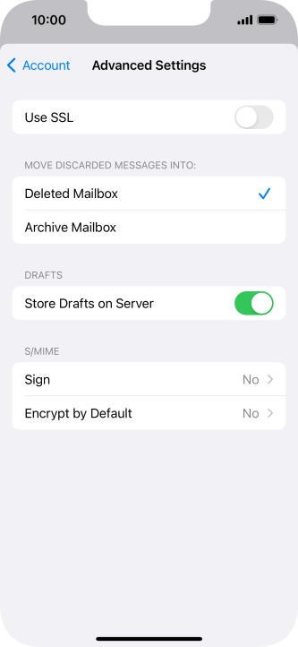 Press the indicator next to "Use SSL" to turn the function on or off.
