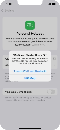 If Wi-Fi is turned on, press Wi-Fi and USB Only.