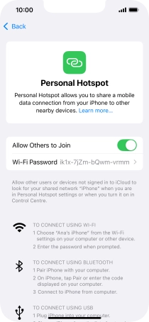 5. Establish connection to personal hotspot from another device