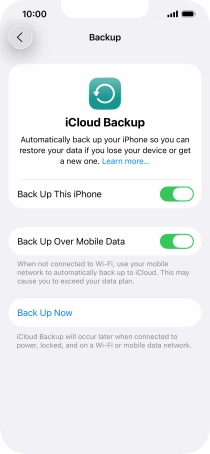 Press the indicator next to "Back Up Over Mobile Data" to turn the function on or off.