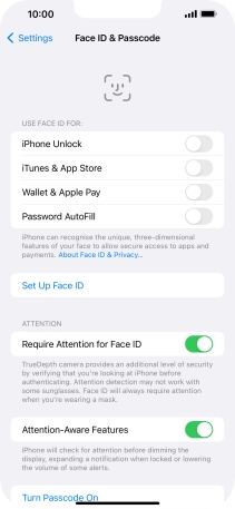You can use your Face ID to turn off the phone lock code, allow access to apps and authorise payments.
