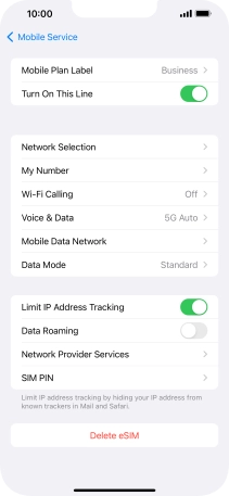 3. Turn automatic selection of price plan for mobile data on or off