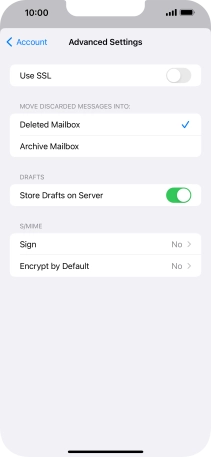 Press the required email account and follow the instructions on the screen to select settings for the specific account.